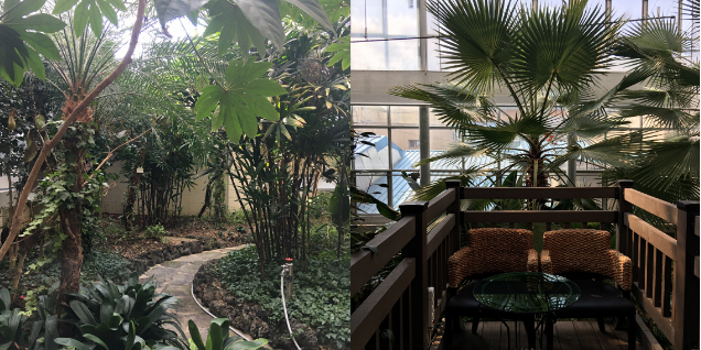 1층 식물원은 100 여종의 다양한 식물로 이루어진 작은 숲속 쉼터로 개장시간은 9-18시이고, 2층 북카페는 2,000 여권의 다양한 서적과 차를 즐길 수 있는 문화공간으로 영업시간은 9-22시이다.